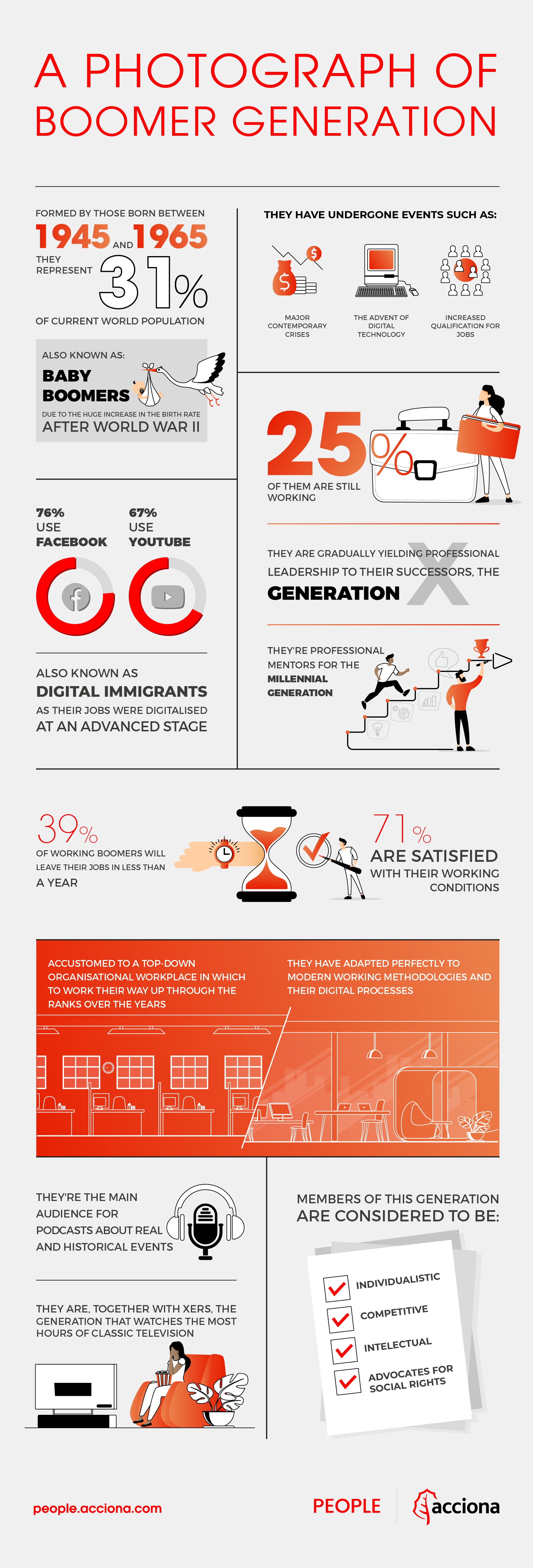“I am very satisfied with my working life. I think I will miss everything I’m learning right now with the advancement of technology and digitalisation in my company”. Stories like Carmen’s, who is 64 years old and about to retire, are an example of how the Baby Boomer generation has performed its work from the 1960s to the present day.