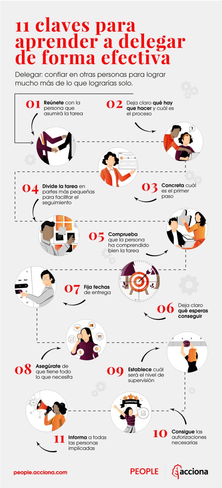 Para preparar una delegación efectiva, asegúrate de comunicar qué es lo más importante para ti, confirma que tus expectativas se han comprendido claramente y pregunta cuánto de ti van a necesitar (ya sea por formación, resolución de dudas o evaluación del trabajo). Aprender a delegar con estos principios en mente, te ayudará a garantizar que las personas adecuadas se centrarán en las tareas correctas.