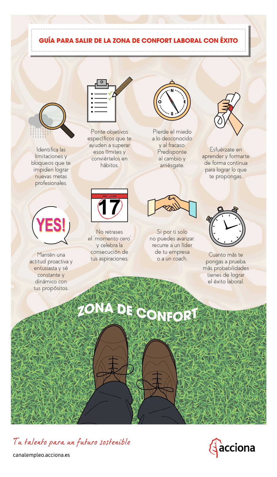 Antes que nada, tenemos que ser conscientes de que para evolucionar debemos ser constantes con nuestras acciones y no obsesionarnos con alejarnos de la zona de confort laboral, puesto que puede ser un proceso pausado, gradual y de largo recorrido.