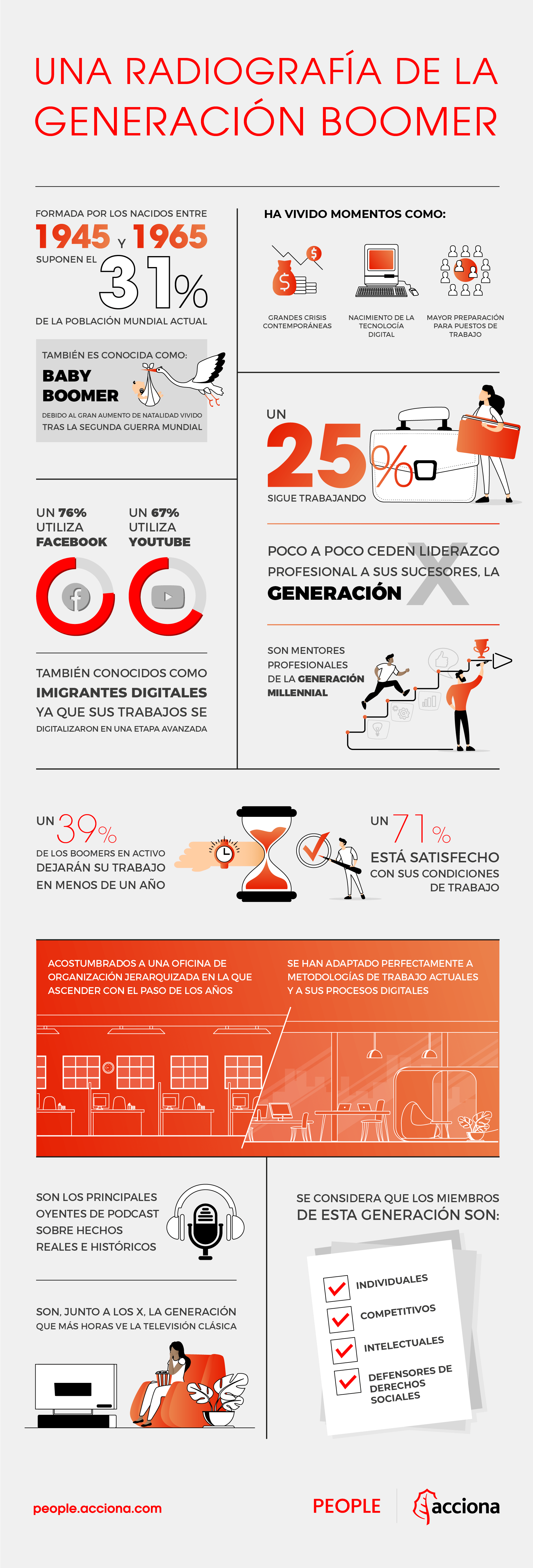 “Me siento muy satisfecha con mi vida laboral. Creo que echaré de menos todo lo que estoy aprendiendo ahora mismo con el avance de las tecnologías y la digitalización en mi empresa”. Historias como la de Carmen, de 64 años y a punto de jubilarse, son todo un ejemplo de cómo la generación Baby Boomer ha desempeñado su trabajo desde los años 60 hasta la actualidad.