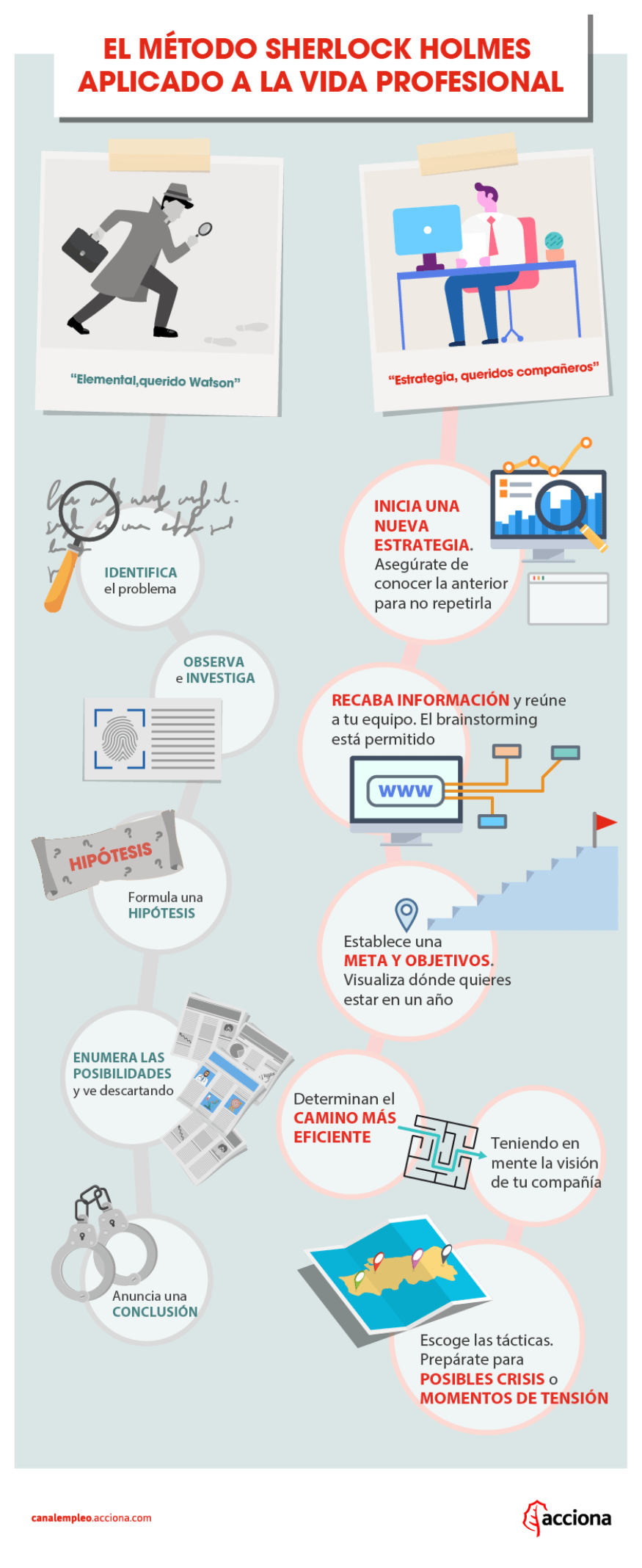 Un detective de finales del Siglo XIX. Un autor especializado en crimen y misterio. Una colección de obras que ya quedan en el imaginario colectivo. Y es que el método Sherlock Holmes y sus juegos mentales han ido más allá de la literatura, hasta el terreno profesional. ¿Puede este investigador cerebral ayudarte a prosperar en tu trabajo? Solo hay una respuesta posible: “Elemental, querido Watson”.