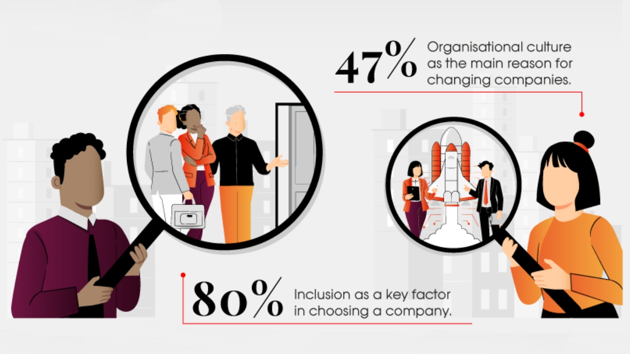 According to a survey conducted by Deloitte, 80% said that inclusion is an important factor when choosing where to work. In addition, according to Hays data, 47% of people actively seeking new job opportunities consider company culture to be the main reason.