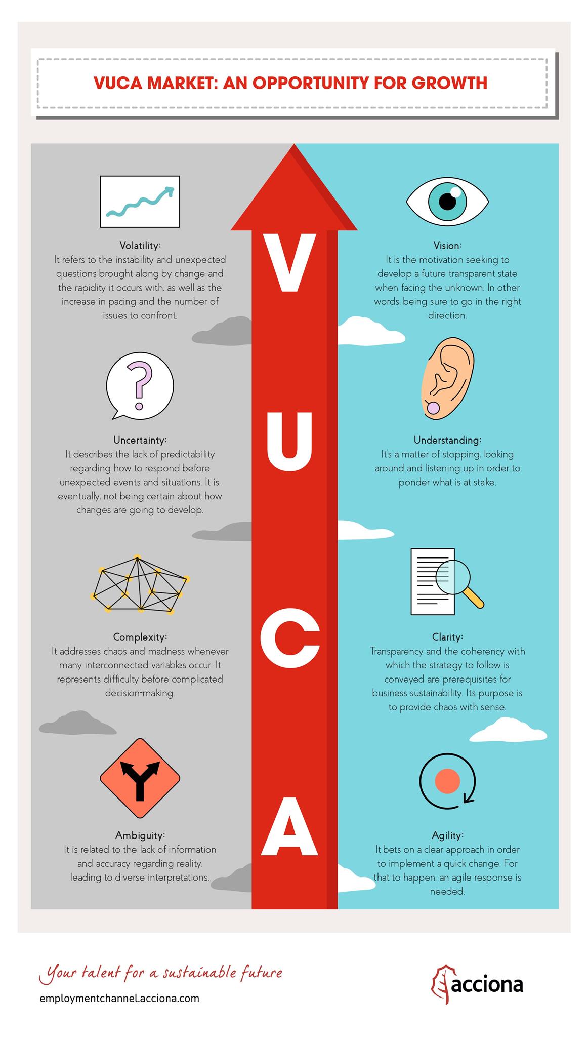 Instead of a threat or a curb, however, the current uncertainty prevailing over labour markets should be seen as an opportunity for improvement, growth and development for both employees and organizations. Although the term VUCA is synonym to a fast-paced, crazy, ever-changing world full of obstacles, this situation can always be exploited to face professional challenges in a quicker, more agile way.