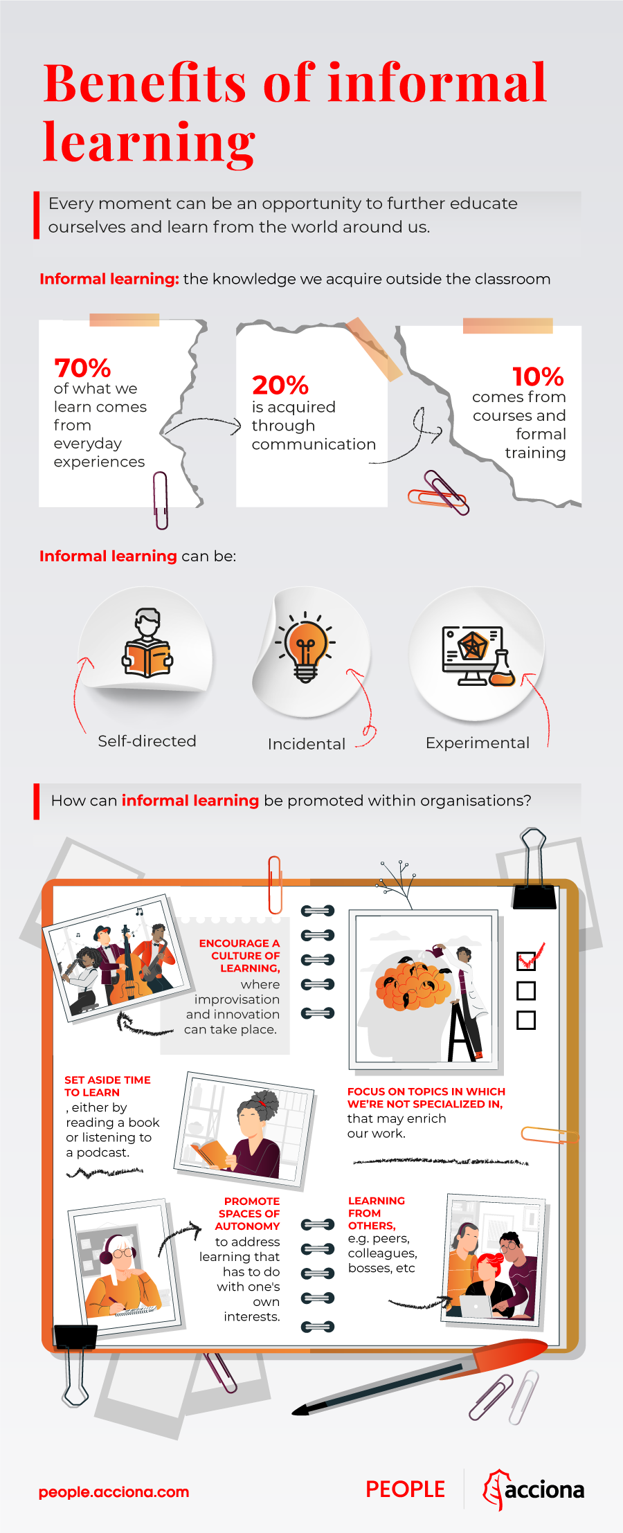 Informal learning is an inexhaustible source of knowledge and development, both at the personal and organisational levels. It shouldnât be underestimated or ignored in favour of formal learning, but encouraged and valued as an essential complement to our ongoing growth. Organisations that promote it not only benefit from more skilled and versatile employees, but also foster an innovative and adaptive work environment. So, whether itâs travelling, cooking, reading or watching tutorials, letâs never stop learning.